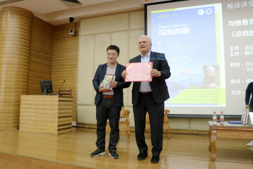 院长杨可教授和其博士生周兴武、“云山青年学者”黄天德博士合作翻译并出版。11月11日下午,学校有幸邀请到了古拉姆·奥季沙里亚先生本人在图书馆报告厅带大家共读《总统的猫》,并走进格鲁吉亚这一神秘的国度。