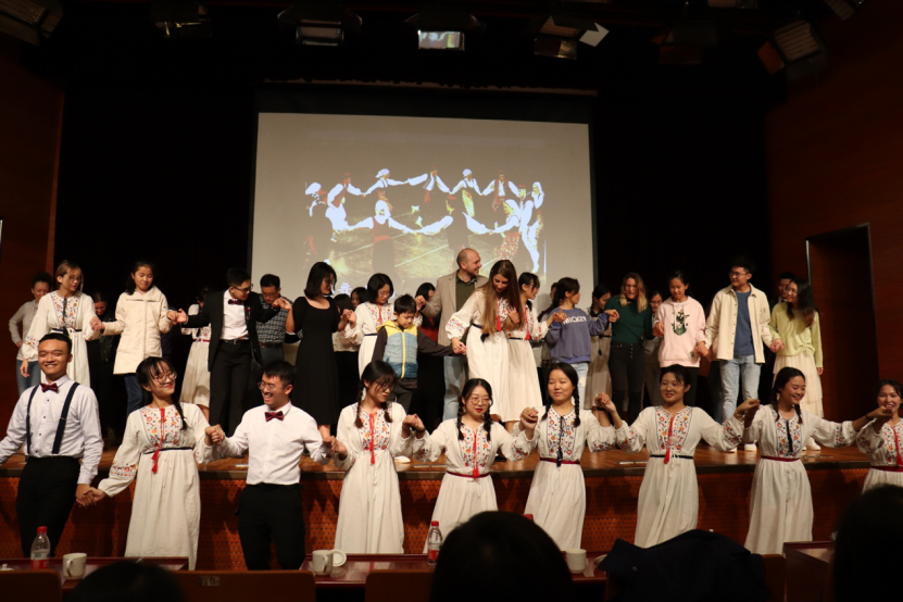 广外塞尔维亚语专业师生表演科洛舞并邀请观众现场学习科洛舞
