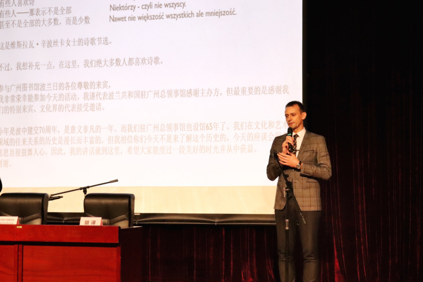 波兰共和国驻广州总领事馆副领事彭迦洛(Karol Pęczak)先生为活动致辞