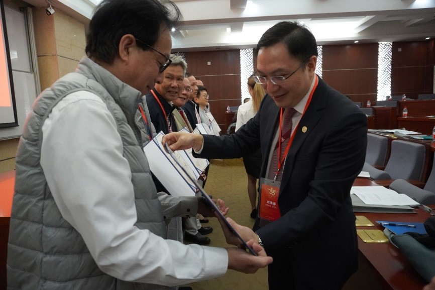 校友会第二届理事会成立大会在第六教学楼黄华讲堂举行。首先由刘海春副校长致辞。刘校长围绕“校友能为学校带来什么”和“学校能为校友提供什么”两个方面,对疫情期间海内外校友捐赠抗疫物资表示了崇高的敬意和感谢。同时,对于如何加深母校与校友联系的问题,他结合自身在新加坡国立大学培训的经历,提议为毕业校友开放课程以增加双方交流。致力构建学校提升校友成长、校友促进学校发展的新局面。