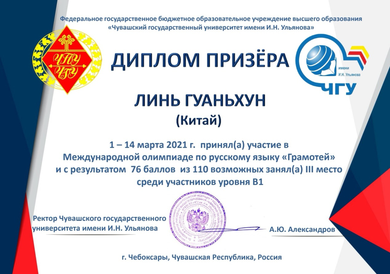 本网讯 2021年3月1日至14日,由俄罗斯楚瓦什国立大学主办的《读书人》国际俄语奥林匹克竞赛举行。我校欧美a片 俄语系学生林冠宏和吴浩添以优异成绩战胜同组来自全球多个国家和地区的参赛选手,获得B1组第三名。