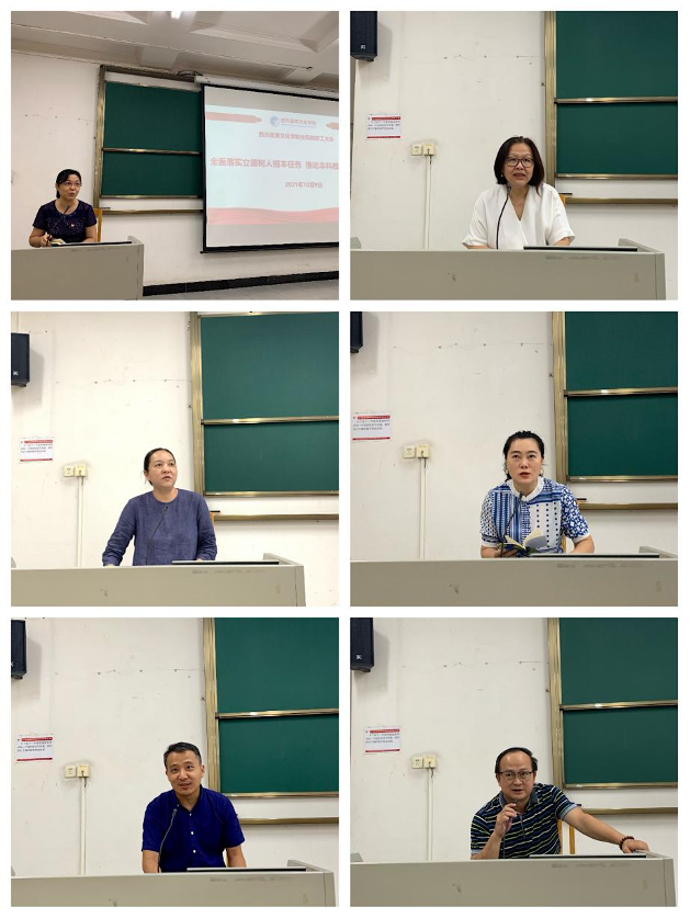 学院杨晓敏副院长、杜卫华副院长、茅银辉副院长、陈华荣副书记和杨可院长先后就开学以来的工作进行了总结、布置重点工作,会议特别强调要重视教学质量月活动,推进“一流专业”和“一流课程”建设、招生工作、教学质量、师德师风建设、课程思政建设、毕业生工作、安全稳定工作、教授系列讲座等。敖湘晖书记对党建工作进行了布置,提出要讲政治、讲责任、讲作风,要创新方式方法,将党史学习教育和专业教学相结合,加强师德建设和纪律教育。