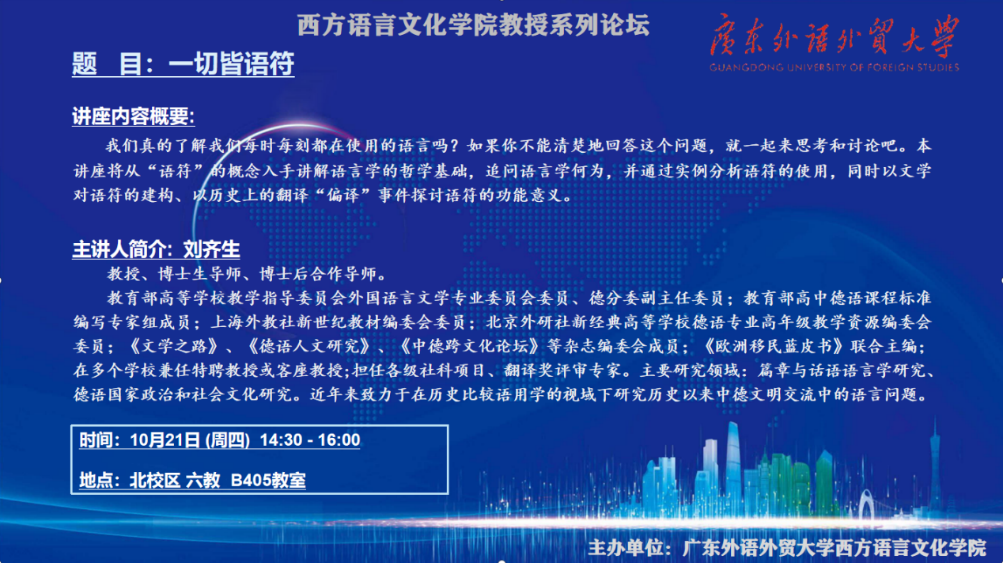 德语系刘齐生教授主讲《一切皆“语符”》。讲座由研究生办公室主任臧宇老师主持,辅导员张阳老师协助,欧美a片