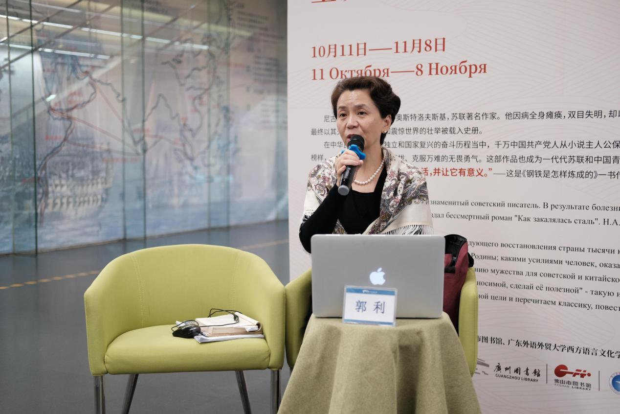 最后,俄语系郭利老师作为俄罗斯文学“悦读分享会”主讲嘉宾,从自己的访学经历出发,介绍奥斯特洛夫斯基故居博物馆的相关情况,同时讲述《钢铁是怎样炼成的》的诞生及传播过程,及其对各国读者的影响,解读在当下重读这部经典的深远意义。活动现场,郭利还进一步分析了高尔基《海燕之歌》、法捷耶夫《青年近卫军》、西蒙诺夫《等着我吧》等苏联红色经典作品在中国影响,为读者打开一幅苏联红色文学的广阔画卷。分享会进行期间,俄语系大三学生吴浩添还朗诵了《海燕之歌》,带领公众领略红色经典的激情与力量。分享会结束后,郭利与还与现场读者代表积极互动,回答了他们的问题。