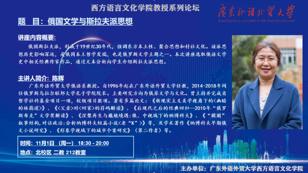 俄语系陈辉教授带来的《俄国文学与斯拉夫派思想》。讲座由研究生办公室主任臧宇老师主持,欧美a片