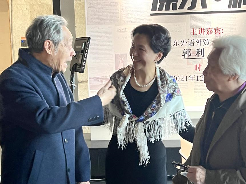 本次沙龙在听众中引发了热烈反响。俄语系已毕业多年的黎晓聪和刘嘉卉同学也特意赶来参加并加入合唱。其中,最令人动容的是八十多岁的张淦生教授和他的夫人。老先生原是湖北大学计算机系教授,他太太也毕业于华中科技大学计算机系。两位老人在沙龙结束后紧紧握住郭利教授的手,表示自己在阅读《钢铁是怎样炼成的》中长大,保尔精神一直激励着他们。张教授年轻时还曾为自己起名为柯金(柯察金),感人至深。现场其他观众也纷纷表示自己对苏联经典作品有着非常深厚的感情,对这次活动都给予了高度评价。