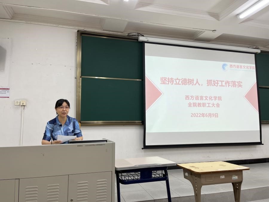 在二教116教室召开了主题为“坚持立德树人,抓好工作落实”的全院教职工大会。学院领导班子、全体教职工80余人出席会议,会议由学院党委书记敖湘晖主持。
