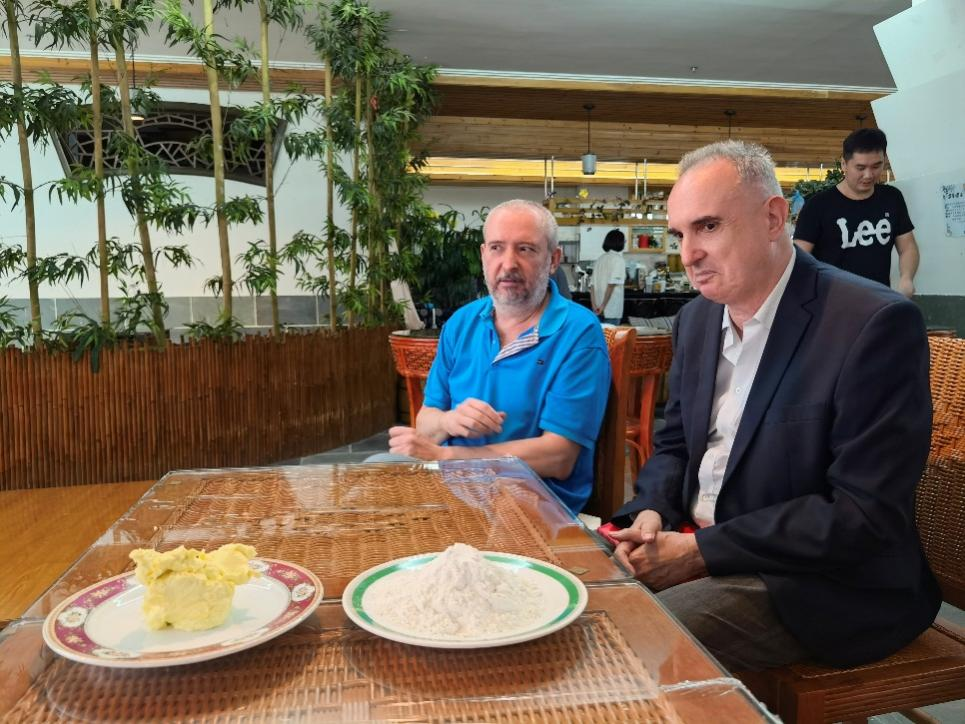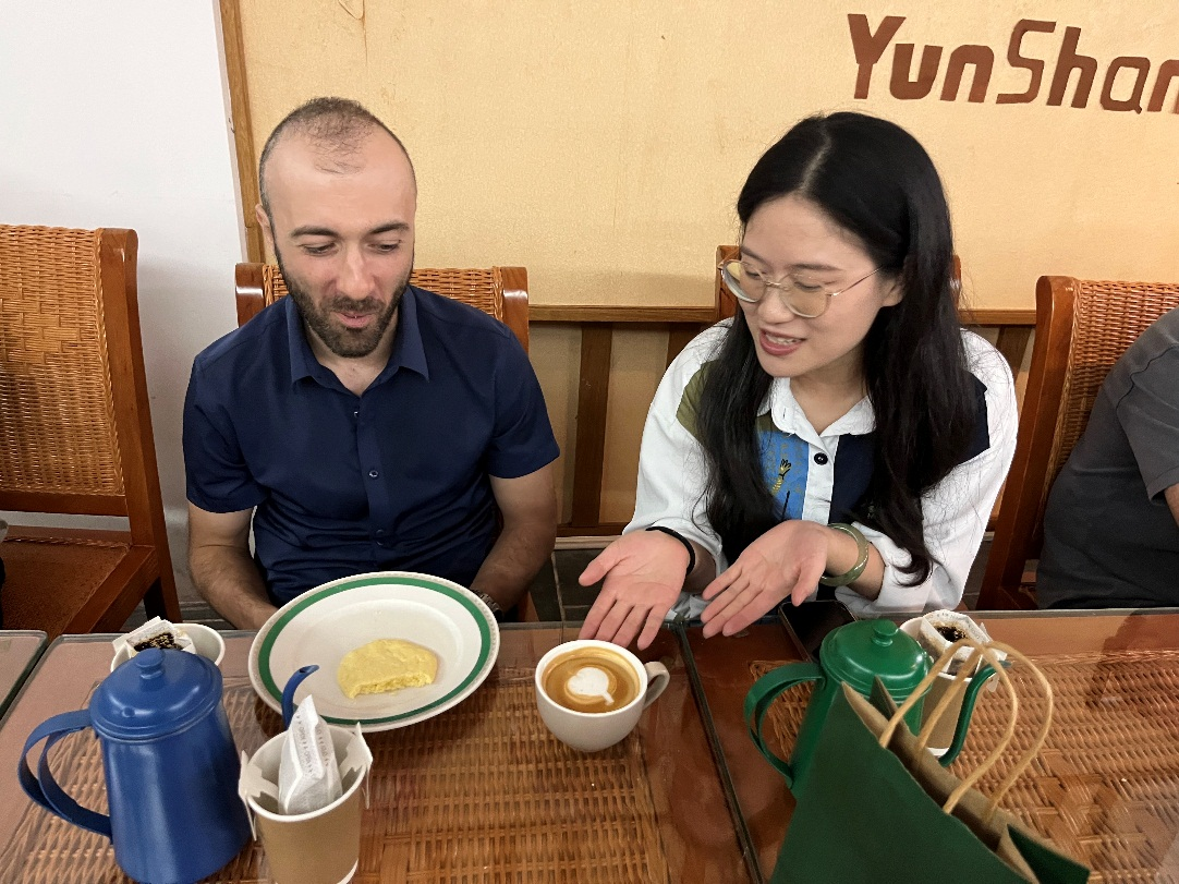 俄语和法语外教正在聆听关于咖啡文化的讲解