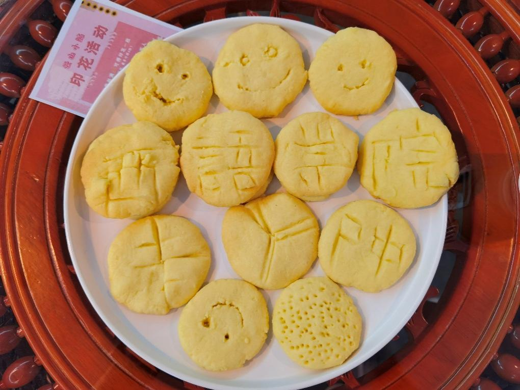 随后,老师们五人一组,开始制作曲奇。组员们纷纷发挥自己的想象与创造力,将黄油面团揉捏塑造成各种形状并绘上特色花纹。半成品摆上桌,大家互相欣赏并帮忙完善,其乐融融。