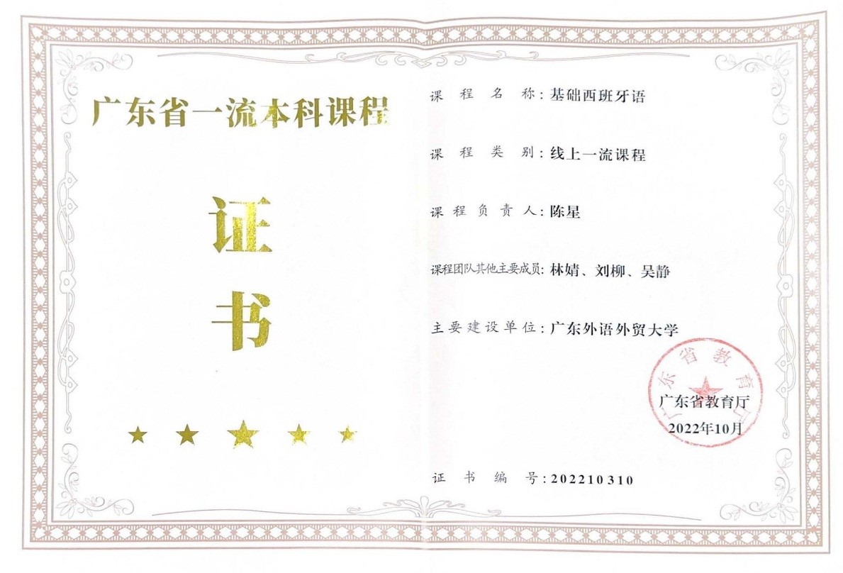 3门课程喜获广东省一流本科课程。其中,《基础法语》、《中世纪及近代德语文学史》入选广东省线下一流本科课程,《基础西班牙语》入选广东省线上一流本科课程。