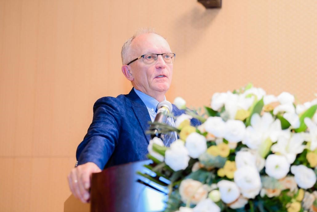 深圳北理莫斯科大学语言系主任列杰涅夫·亚·弗教授在主旨报告中围绕纳博科夫在中国获得关注的先决条件、纳博科夫小说《中国旅行》中的主题、纳博科夫作品的中文译著和中国学者研究纳博科夫的几大趋势等问题介绍了纳博科夫在中国的译介情况。