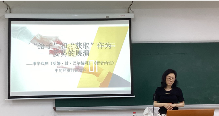 丰教授接下来讲解了戏剧《智者纳坦》中人物财富的“给予”和“获取”姿势。通过分析剧中人物纳坦和苏丹萨拉丁给予和获取姿势,证明了两者的慷慨善良和前者获取给予和合理性以及后者的不合理性,表现出莱辛的启蒙经济思想,即人们应该拥有理性的经济思想和理性的经济行为。此外,丰教授指出两部戏剧《明娜》和《纳坦》中体现的莱辛教育意图,启蒙不仅在于美德和情感的教育与完善,也在于使人具有符合市场经济规律的经济思想和经济行为。