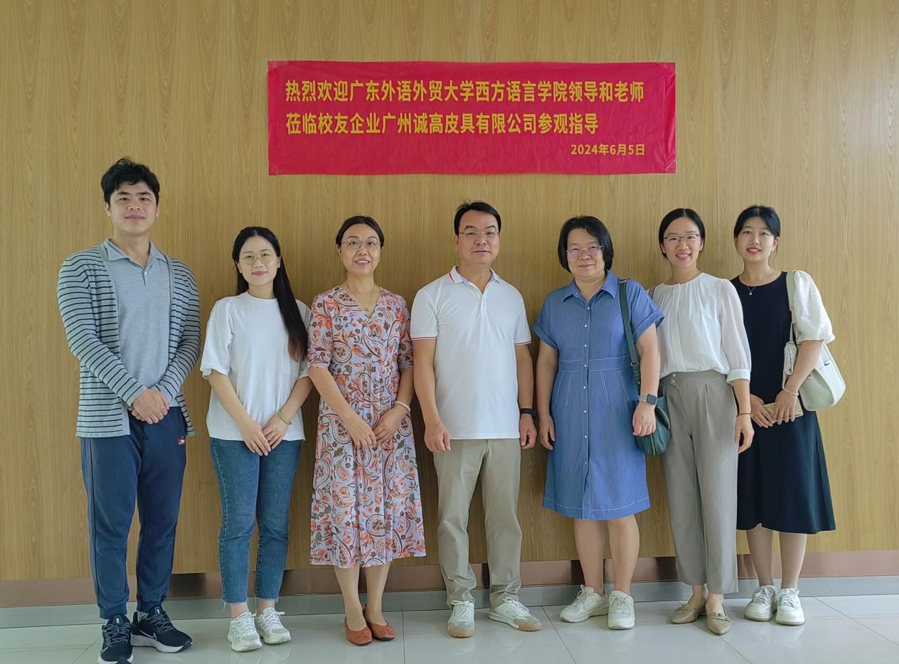 党委书记王秀民带队,学院五级组织员敖湘晖、党委副书记魏少娟,以及辅导员倪娉婷、冯迪南、张阳一行走访了位于花都区的校友企业广州诚高皮具有限公司。诚高皮具负责人、广外西语92级校友林业伟热情接待了来访团队。