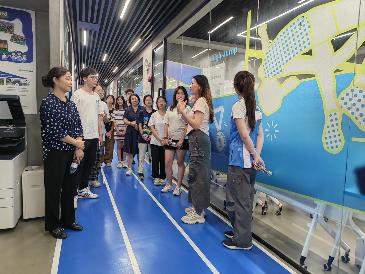 党委书记王秀民带队,副书记魏少娟、组织员敖湘晖、辅导员张阳及24名学生代表参与,受到了迪卡侬方面的热情接待。