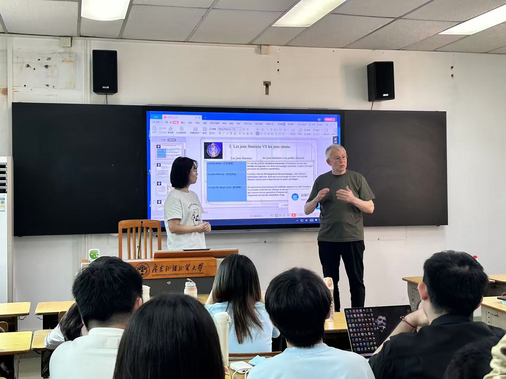 迎来了一场别开生面的中法文化交流活动。法国著名人类学家戴泽教授Dominique Desjeux受邀与2024级法语语言文学硕士生展开主题为“Mon histoire avec les jeux”(我与游戏的故事)的文化分享,通过游戏、美食与娱乐的多元互动,架起跨文化理解的桥梁。