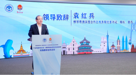 在随后的致辞环节中,袁红兵表示,此次合作是“统筹推进教育、科技、人才一体化发展”的基层实践,是“依托实践基础,厚积薄发、水到渠成的‘顺势之为’”。通过设立全国首个葡语国家及地区税收合作办公室、运营“一带一路”税务学院·澳门(横琴校区)、打造粤澳跨境税创营等一系列探索,横琴税务在服务琴澳一体化、链接葡语国家的实践中积累了宝贵经验。此次与广外携手,旨在将一线的“实战场景”与高校顶尖的“教研智囊”深度融合,打通“政产学研用”链条,让人才培养精准对接国家战略“需求侧”。他进一步强调,这亦是“共育未来英才,面向中葡、赋能发展的‘长远之策’,期待通过提供集税收实务、跨境服务、国际交流于一体的‘全景式实践课堂’,与校方共同锻造能够担当重任的‘新质生产力’和国际人才‘先锋队’”。