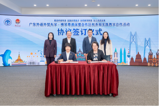 与横琴粤澳深度合作区税务局实践教学合作活动在横琴成功举行。活动以“葡语桥接琴澳、实践共育英才,协同教学新篇、助力高质发展”为主题,标志着双方在葡语人才培养与跨境实践领域的协同合作正式迈入新阶段。横琴粤澳深度合作区税务局党委书记、局长袁红兵,党委委员、副局长吴健,党委委员、总会计师张惠冰,党委委员、总经济师白晓枫以及横琴粤澳深度合作区法律事务局副局长、中葡经贸中心理事会副理事长吴燕翔,欧美a片