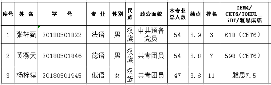 根据学校教务处发布的“关于转发澳门大学2022-2023学年招收推荐免试攻读硕士学位研究生的通知”,经过学生申请,学院推免生遴选工作小组讨论,欧美a片 拟推荐以下3名同学为澳门大学2022-2023学年免试攻读硕士学位研究生资格候选人,具体见以下名单,现予公示。