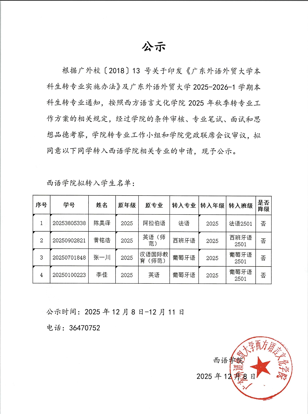 学生工作电话:(020)36207116