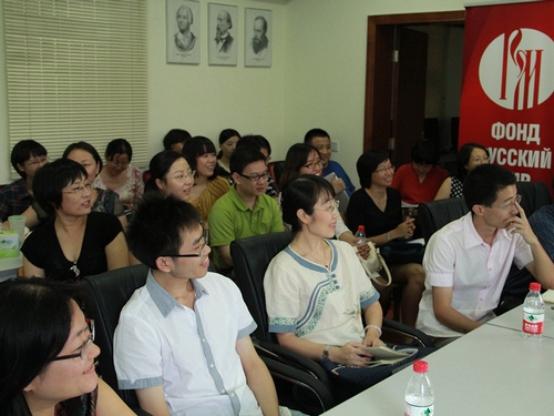 简短的开班仪式后,研讨会正式开始。林凡同学作了题为“跨文化学术研究中的方法论探讨”的演讲。发言围绕问卷调查等四种常用的研究手段,从哲学、人类学、社会学与心理学等多维度辨析各自的优缺点。 林凡同学以现象学理论为主导,结合自身场地调查的实例,着重阐释了深入访谈中采访者、被访者与访谈行为本身的三个困境,提出以梅洛-庞蒂身体现象学为理据,运用参与体验式的观察法对治访谈法中可信度存疑的问题,而后又引证德里达对胡塞尔思想的解构学说论述书写文字的重要性以及在文本分析中如何利用文字的开放性特征进行创新解读的思路。小小的俄语中心沉浸在严谨而浓厚的人文学术氛围中。